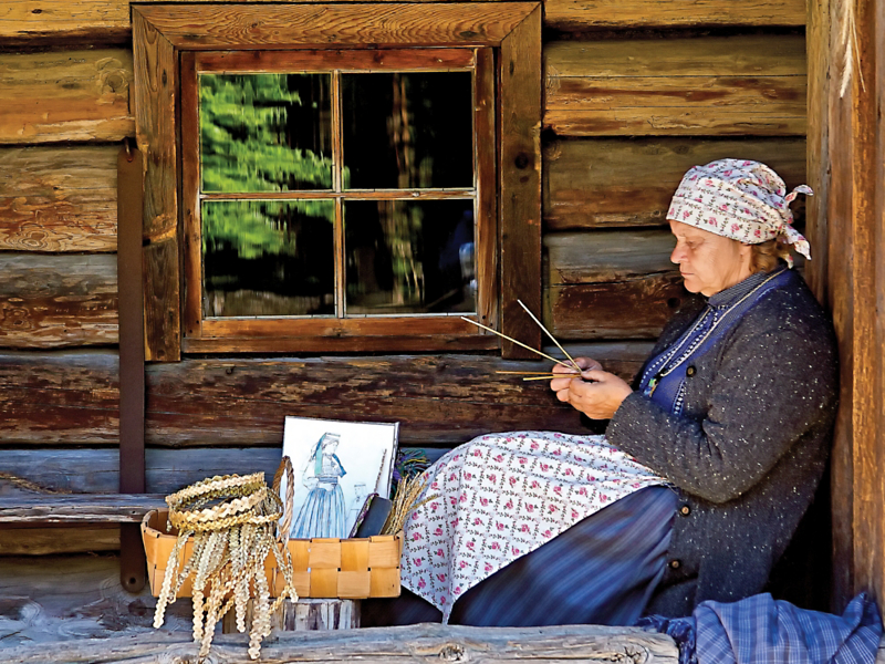 A local woman dressed in traditional clothing demonstrates crafts and skills from Estonia’s past during the Baltic Capitals post-trip extension of our Russia Revealed: Moscow to St. Petersburg vacation.