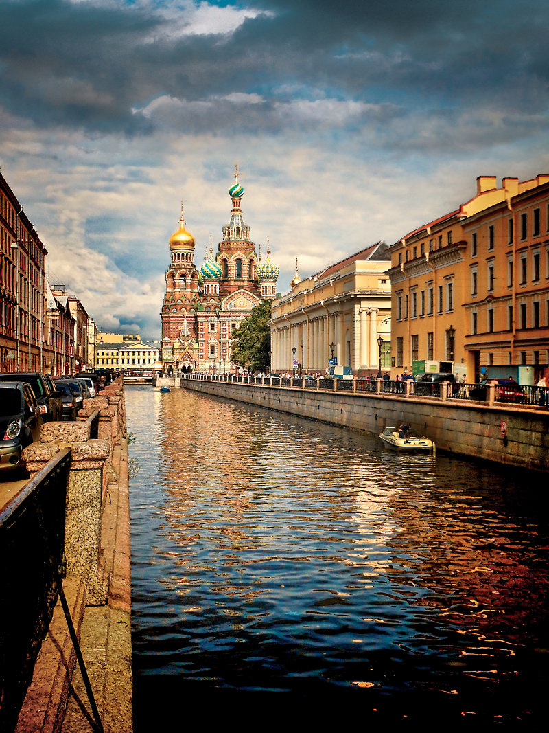 As the clouds cleared in St. Petersburg, the iconic Church of the Savior is bathed in sunlight, as seen from a bridge over the Griboyedov Canal during our Russia Revealed: Moscow to St. Petersburg vacation.