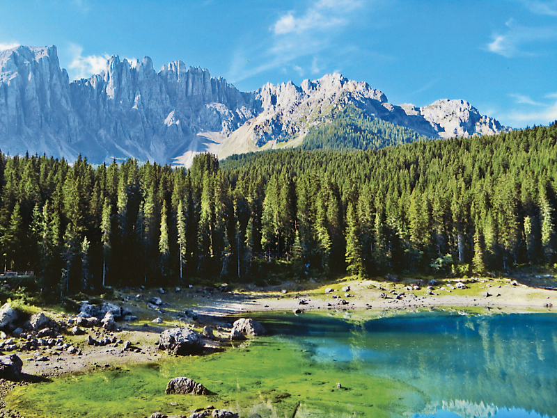 Lake Carezza, located in the Dolomite Mountain range in northern Italy, is seen in this winning photograph taken during our Italy: Tuscany, the Alps & the Riviera vacation.