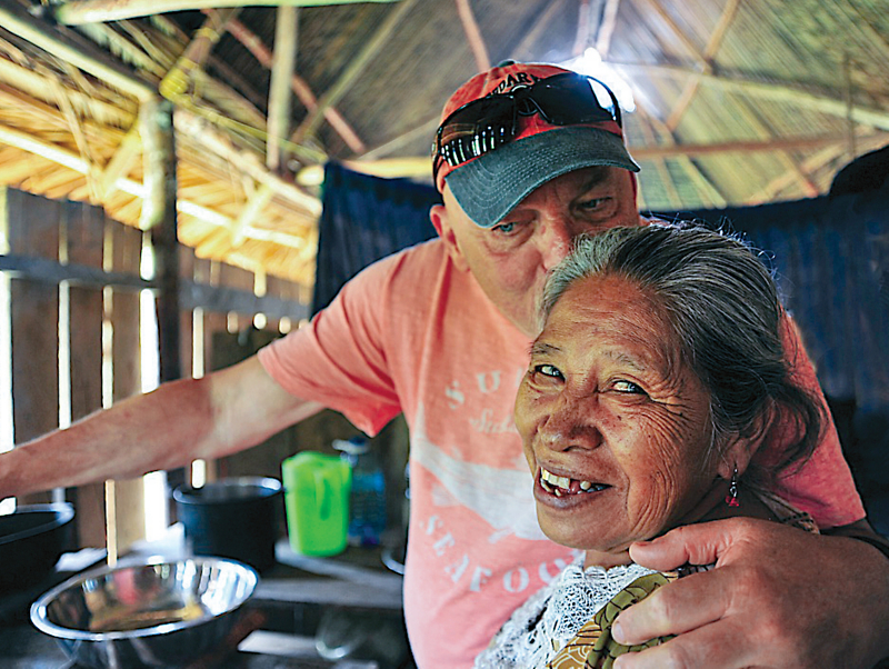 On Nese’s Panama Canal Cruise & Panama: A Continent Divided, Oceans United cruise vacation, fellow traveler Donald shows his appreciation to their host after she demonstrates how to make chocolate from cocoa beans.