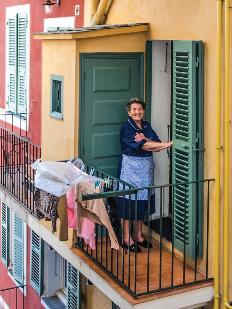 After Ann asked this woman who had just finished hanging the laundry for a photo, she said, “Come sta?” (Italian for "How are you?"). The woman laughed in response and left. Ann only later realized that she was no longer in Italy. The image was captured on The Rivieras: France, Italy and the Isles.