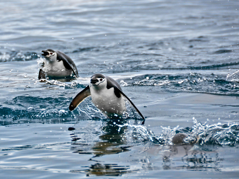 Nancy Ann says, “Before experiencing Antarctica, I wasn’t enthralled with penguins. Seeing them in their natural environment changed my understanding of this bird.” Here, she captures porpoising chinstrap penguins on Antarctica’s White Wilderness.