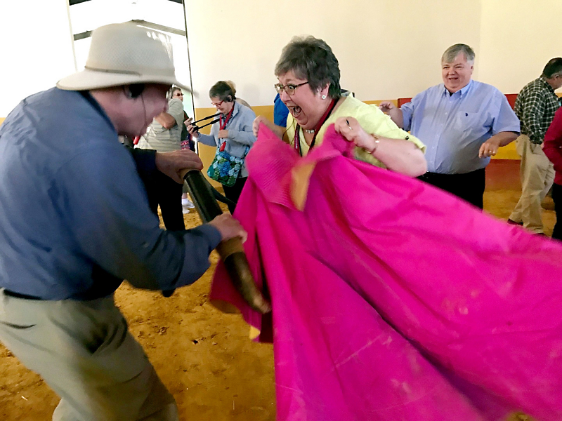 During Spain & Portugal in Depth, these travelers were caught in a moment of joy and excitement as they practiced bullfighting.
