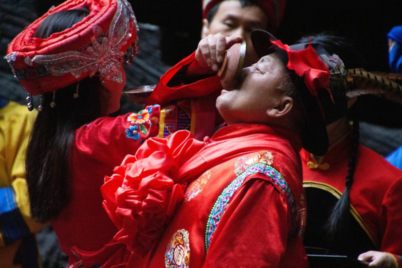 The Tribe of the Three Gorges takes part in a joyous wedding celebration, photographed during China & the Yangtze River.